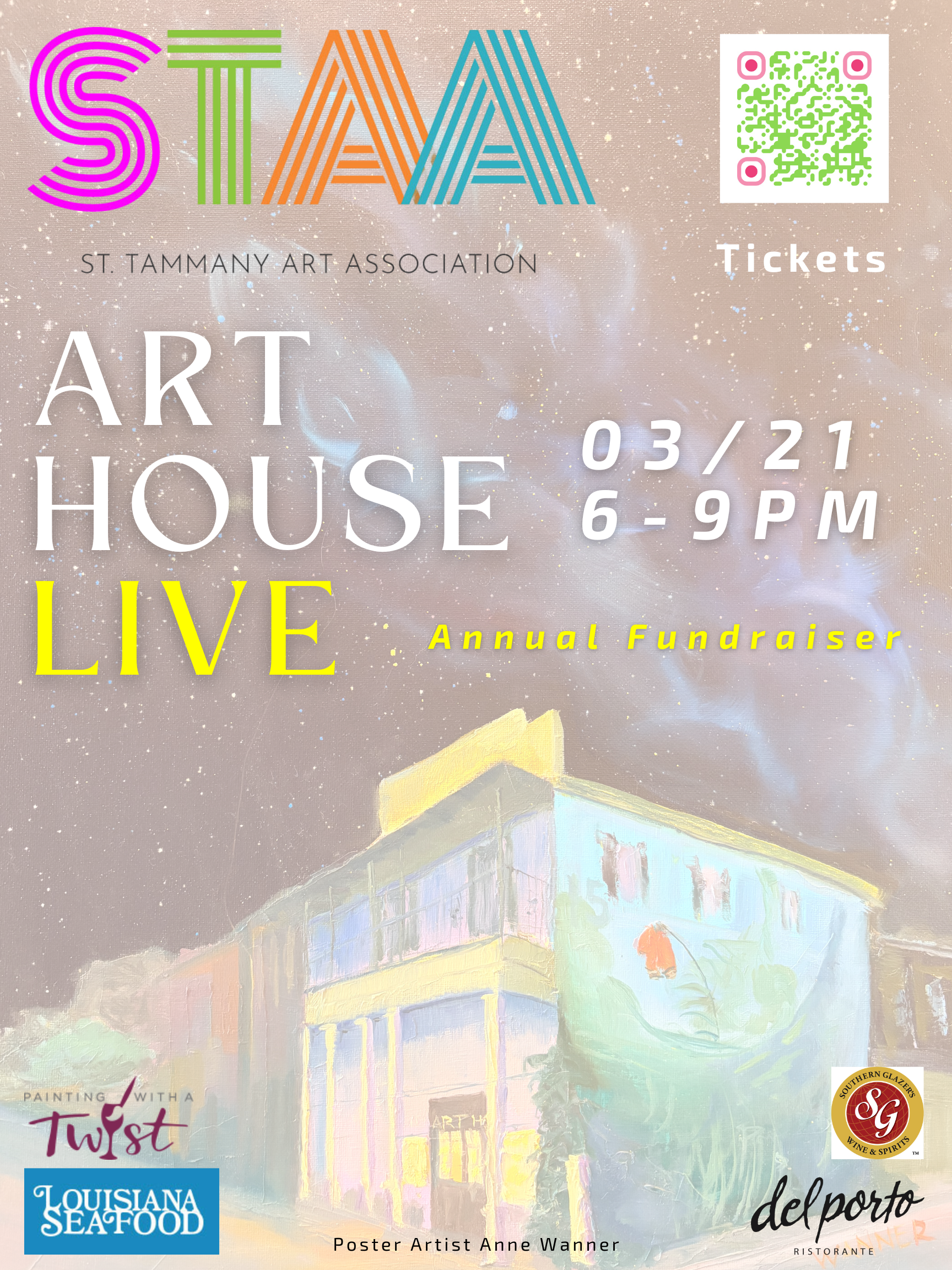 Join us this spring for a celebration of art, community, and creativity at the St. Tammany Art Association’s annual fundraiser! We are thrilled to invite you to a memorable evening filled with artistry, live music, delectable food, an open bar, and an exciting silent auction—all in support of our beloved art house.