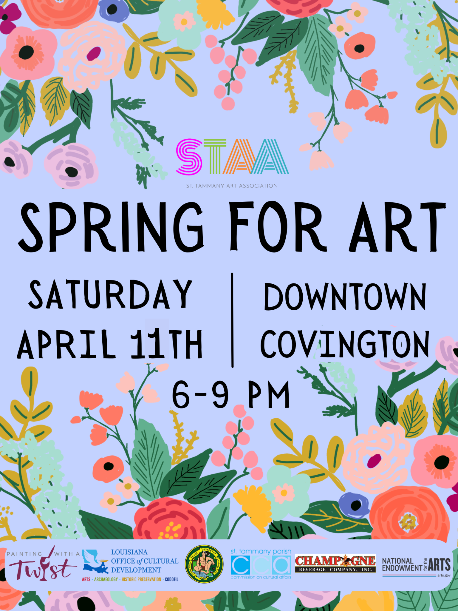 This event is funded in part by the City of Covington, Champagne Beverage Company, Louisiana Division of the Arts, Office of Cultural Development, Department of Culture, Recreation and Tourism, in cooperation with the Louisiana State Arts Council, as administered by the St. Tammany Parish Commission on Cultural Affairs.